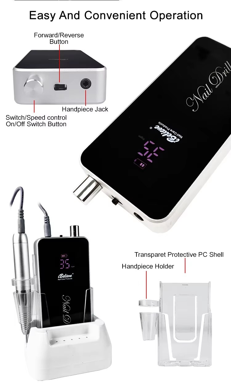 Motor: Mô-tơ được nâng cấp mạnh mẽ giúp phá bột nhanh, tối ưu cho thợ nail làm việc hiệu quả.